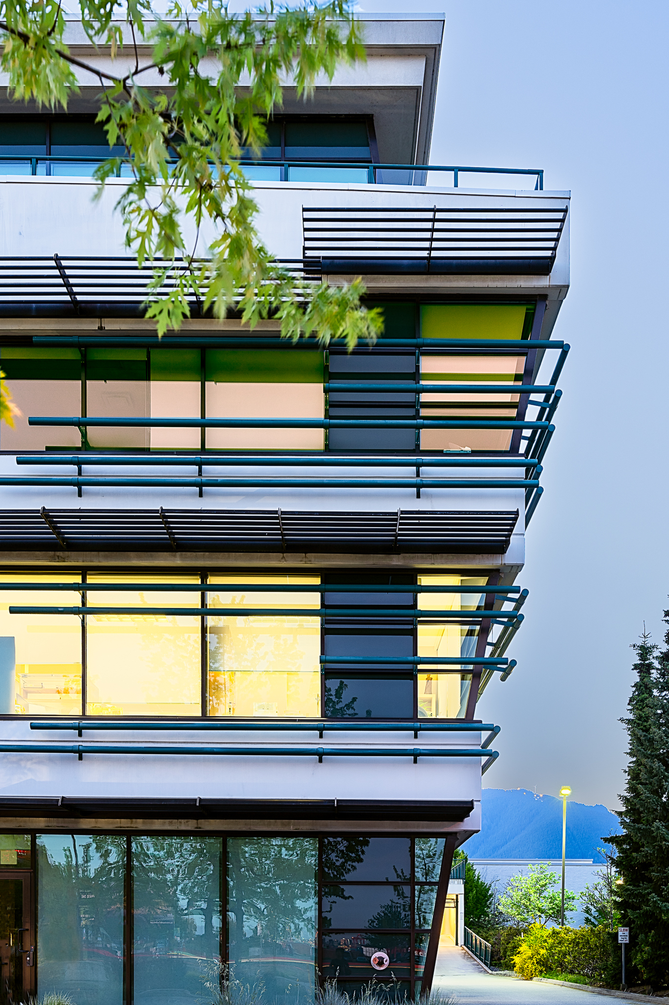 The expressive facades required strong technical detailing, including the sloping wall detail, and the integrated sculptural steel elements. The building employs deep overhangs to protect from Southern solar gain without compromising its expansive views of Burrard Inlet.