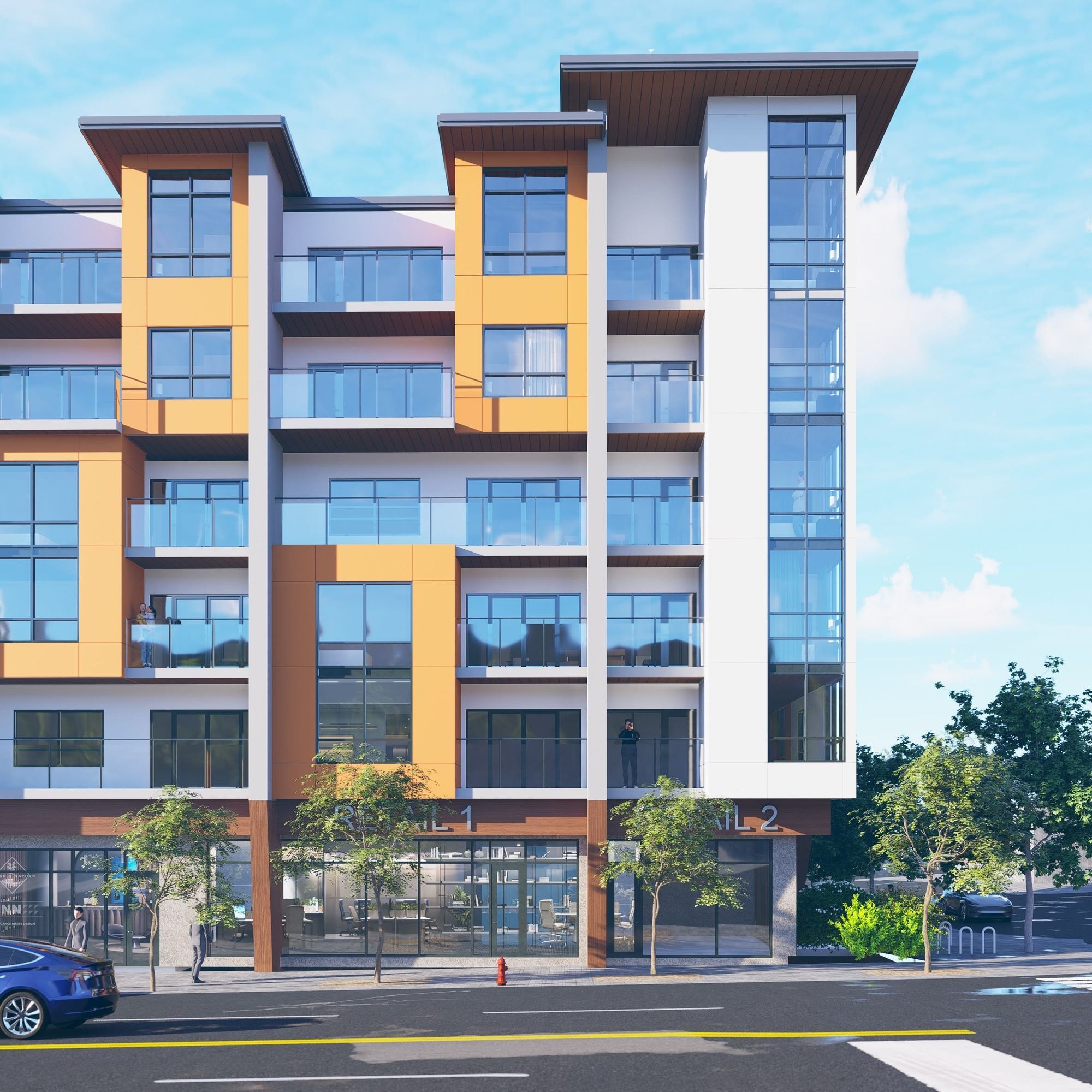 Port Moody has worked to transition its main thoroughfare, St. John's Street, into a vibrant pedestrian street-scape. Using the typology of the six-storey mixed use form with commercial ground floor, Spring and Mary contributes to the commercial stock and density of the area. By using a courtyard cut through the rectangular form, the building achieves the highest density on the site possible, and does not sacrifice access to natural light and ventilation into units. This strategy gives this architectural courtyard and rooftop amenity spaces to act as a social centre for the building's community.